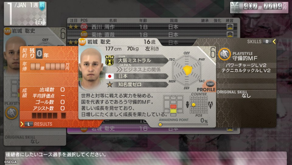 | LSH | 杉下 竜次 | 25 | 日本 | 21500万 | 世界屈指 | 選手として最盛期 | トリックスター | ---- |