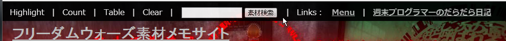 追加した機能もありますので、簡単にですが表示されている、「Highlight」、「Count」、「Table」、「Clear」、「素材検索」について説明します。